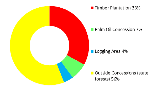 production forest (HTI) concessions, at33 percent, while the hotspots in oil palm plantation concessions accounted for only 7 percent.