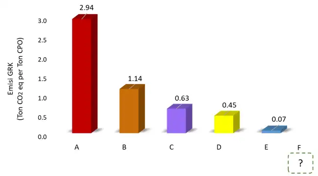 - A : Kebun sawit dengan tanpa adopsi GAP, Methane Capture, dan energi berbasis biomassa sawit