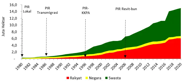 Data Lima Fase Kebijakan Kemitraan dan Perkembangan Luas Perkebunan Kelapa Sawit Indonesia