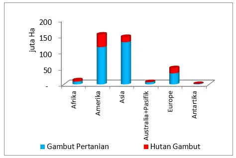 - Top-3 kawasan negara dengan luas lahan gambut terbesar adalah Eropa dan Rusia (168.12 juta hektar), Amerika (154.47 juta hektar), dan Asia (36.9 juta hektar)